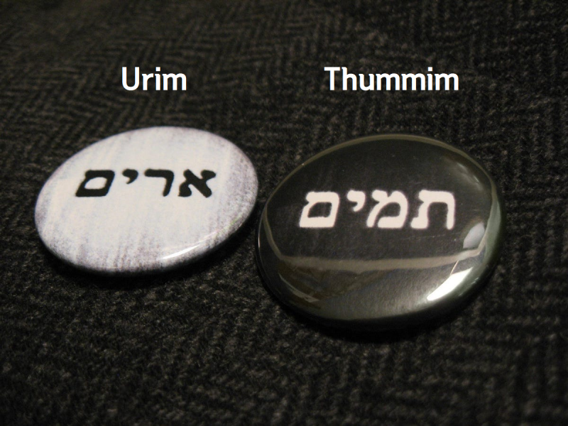 제사장의 옷인 에봇에는 가슴에 이스라엘 12지파의 이름을 새긴 보석을 넣은 흉패를 달게되어 있는데 그곳에 우림과 둠밈을 같이 넣어 두게 되어 있습니다.