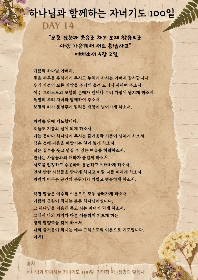 « Previous <하나님과 함께하는 자녀기도 100-11> <하나님과 함께하는 자녀기도 100-13> Next »