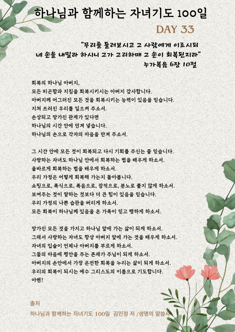 올바르게 회복하는 법을 배우게 하소서 (김진아 사모)