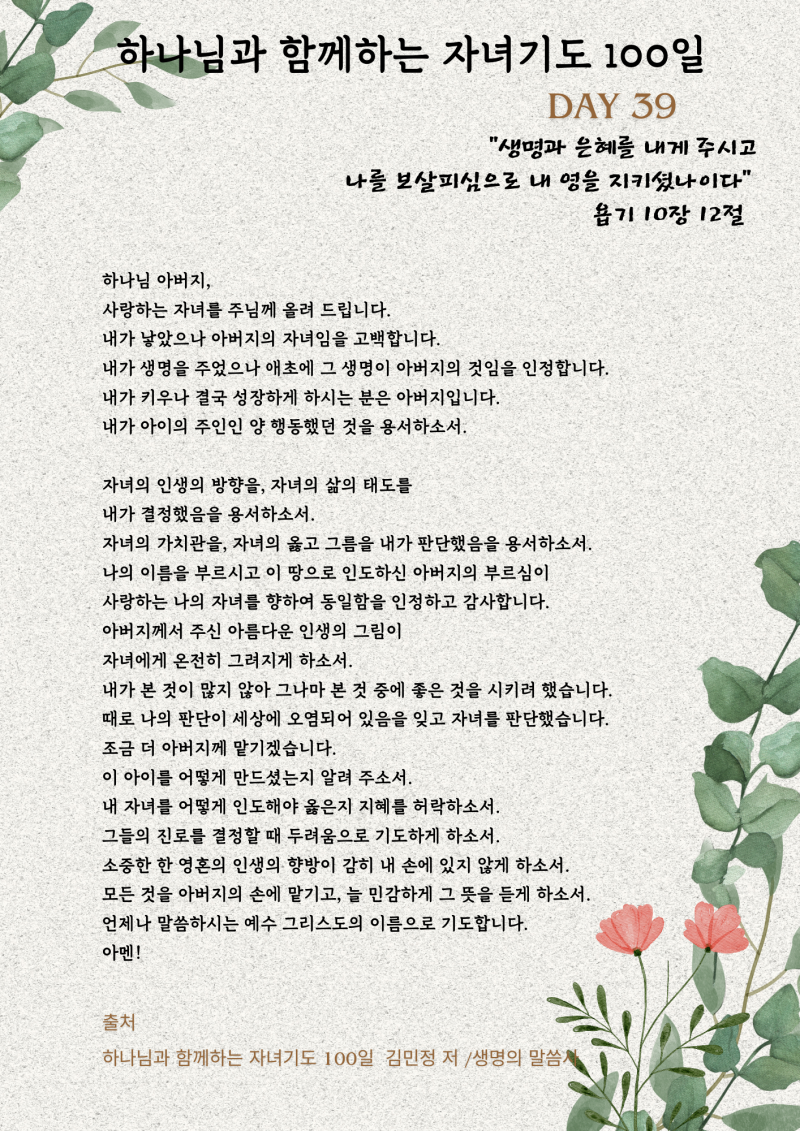 <하나님과 함께하는 자녀기도 100, Day 39>